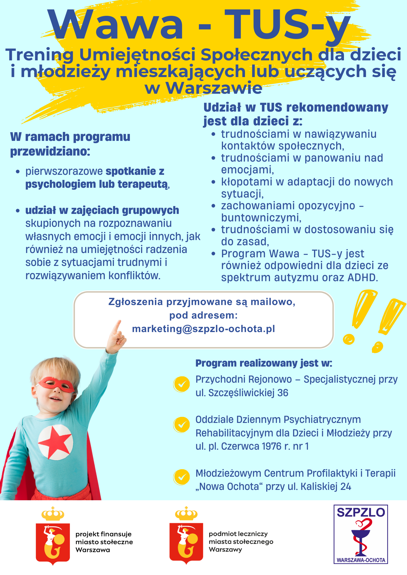 Program Promocji Zdrowia “Wawa- TUS-y” - Trening Umiejętności Społecznych dla dzieci i młodzieży mieszkających lub uczących się w m.st. Warszawa